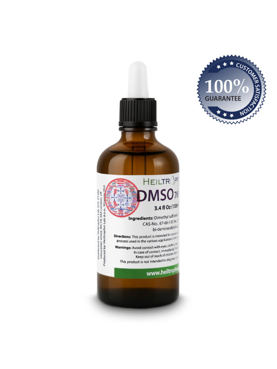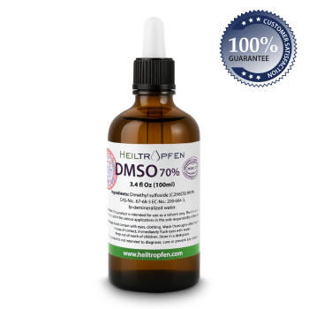 DMSO se používá ve Spojených státech již více než 100 let. Je to přirozená látka odvozená od dřevěné buničiny a je neškodná při použití s příslušnými opatřeními. DMSO je organická, bezbarvá, přírodní, nesyntetizovaná kapalina extrahovaná z ligninu. Použití DMSO je pouze rozpouštědlem a volba jeho použití v jiných aplikacích je výlučnou odpovědností uživatele. Molekulární vzorec: C2H6OS Obsah: čistý Ph Eur (70%).