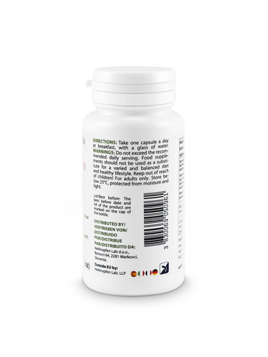 WARNINGS: Dietary supplements should not be used as a substitute for a varied and balanced diet and healthy lifestyle. Keep out of reach of children! Store below 25°C, protected from moisture and light. The best before and lot of the product are marked on the cap of the bottle. Do not use this product, if you are pregnant, nursing, taking medications, or have a medical condition. Consult a physcian before use.