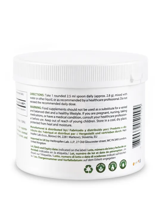 Take 1 rounded 2.5 ml scoop daily (approx. 2.8 g), mixed with water or other liquid, or as recommended by a healthcare professional. Do not exceed the recommended daily dose.
