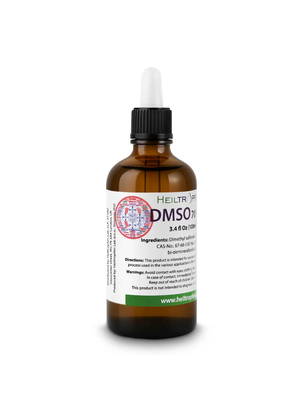 Ingredientes de grado farmacéutico | Dimetilsulfóxido líquido 3,4 oz - 100 ml | Alta pureza | Bajo olor | Heiltropfen® DMSO líquido 70/30