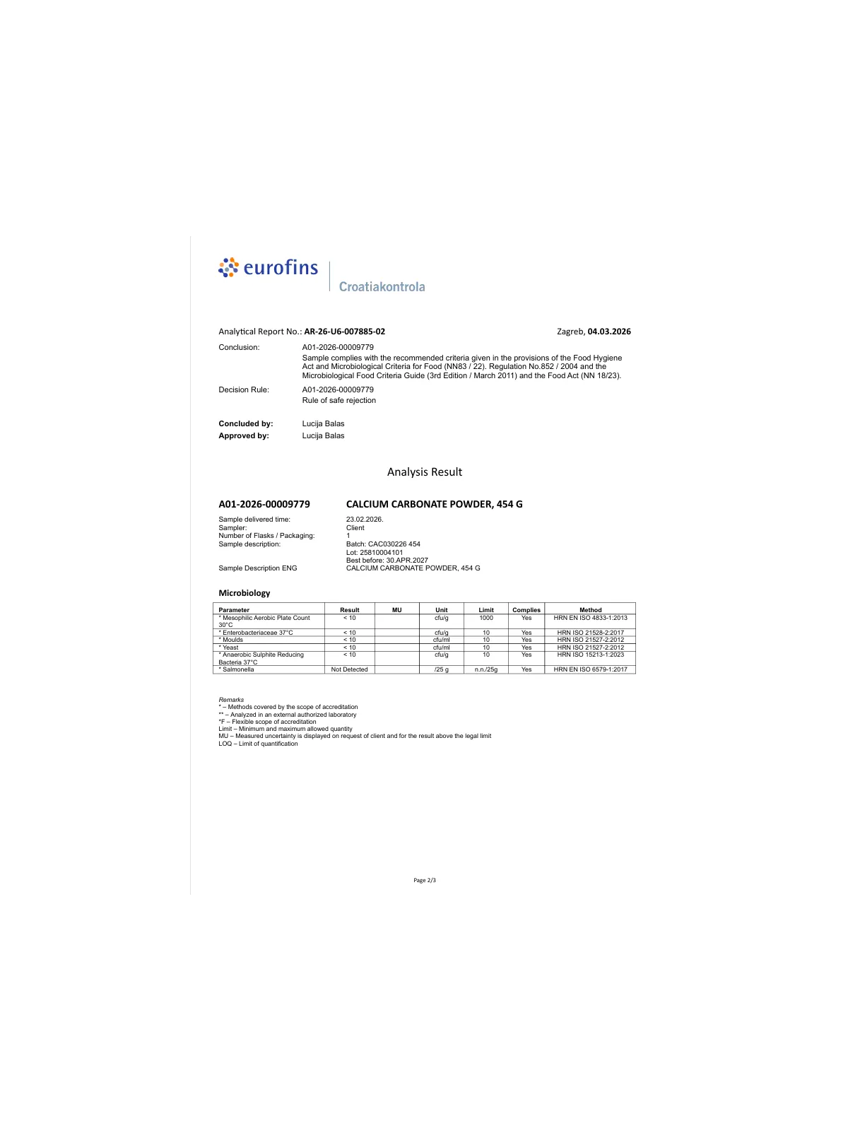 El carbonato cálcico es un compuesto químico, representado por la fórmula química CaCO3. Se estima que alrededor del 4 % de la corteza terrestre está compuesta por carbonato cálcico. Se encuentra de forma natural en minerales y rocas, entre los que se incluyen la calcita, la piedra caliza, la tiza, el mármol y la aragonita. El carbonato cálcico es el ingrediente activo de la cal agrícola y se crea cuando los iones de calcio del agua dura reaccionan con los iones de carbonato, formando incrustaciones de cal.