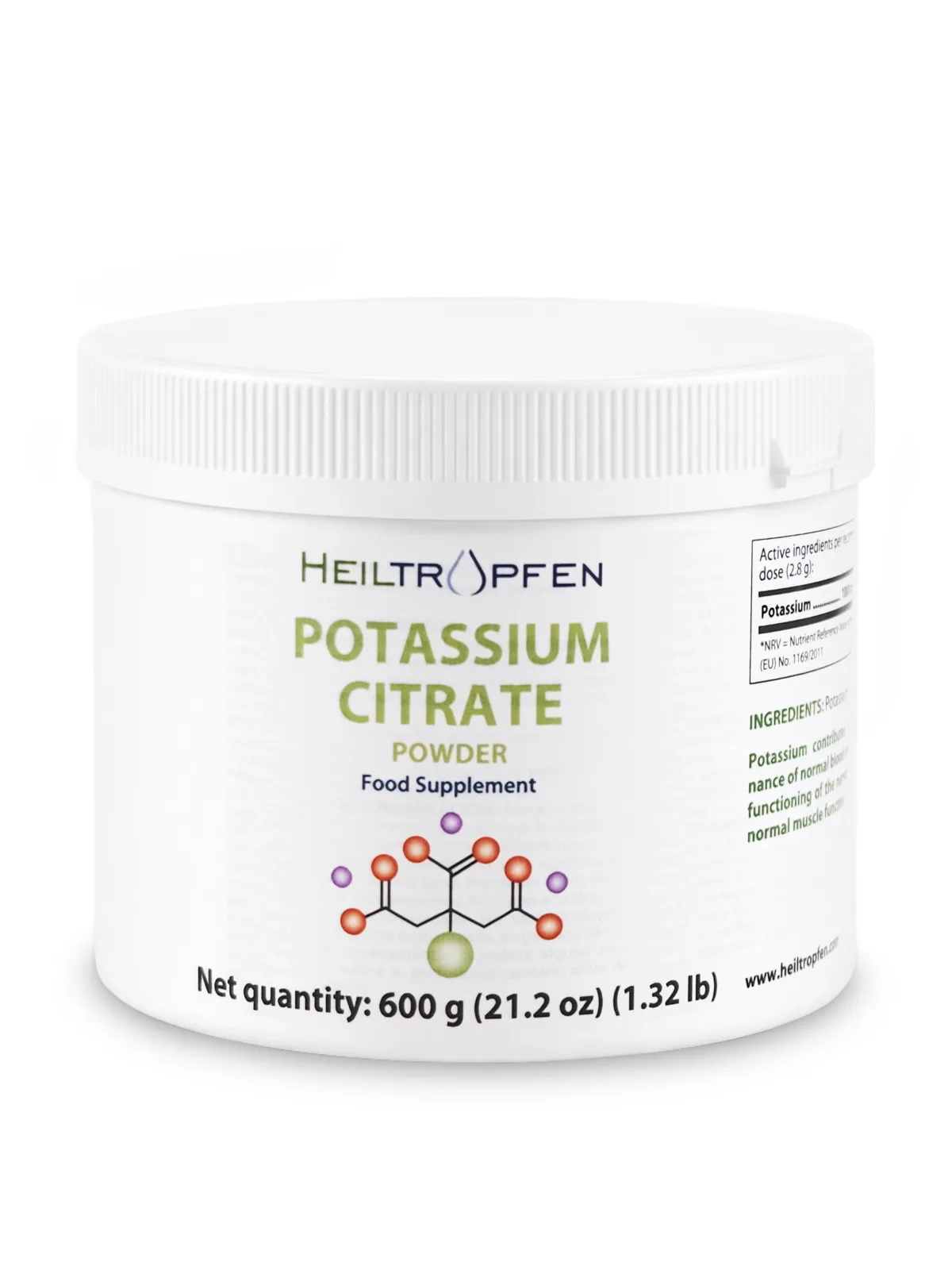 Kaliumsitraattijauhe on korkealaatuinen ravintolisä, joka tarjoaa kaliumia kaliumsitraatin muodossa. Jokainen suositeltu päiväannos (2,8 g) sisältää 1000 mg kaliumia (50 % vuorokautisen saannin vertailuarvosta*), mikä tekee siitä kätevän tavan täydentää päivittäistä ravinnonsaantia.