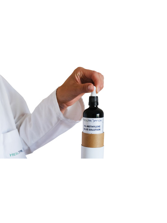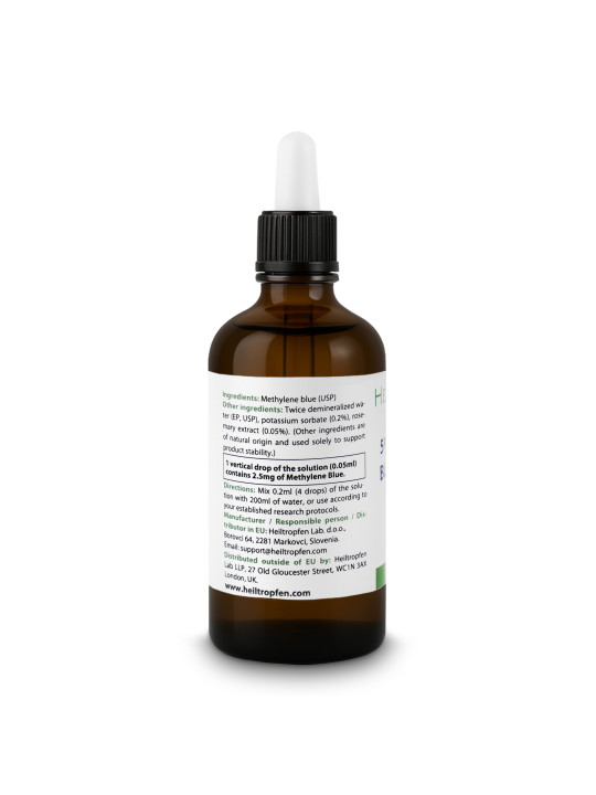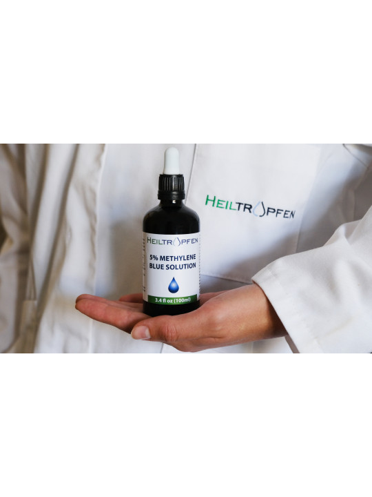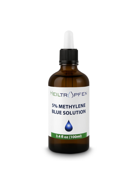 Najviša koncentracija | Ultra visoka čistoća | USP farmaceutska kvaliteta sastojaka - testirano od treće strane | Formaldehid besplatan | Staklena bočica Faktovi o proizvodu: 5% metilen plavi trikhlorid, demineralizirana voda. Sastoje se od farmaceutske kvalitete sastojaka: Demineralizirana voda (EP, USP), metilen plavi (USP). 1 vertikalni kap tekućine (0.05 ml) sadrži 2,5 mg metilen plavog. Naša premium tamno jantarna staklena bočica s čepom/pipetom štiti metilenu plavu od sunčevog svjetla i oksidacije, osiguravajući dugotrajnu čistoću i maksimalnu učinkovitost. Sigurno pakirano u izdržljivom, teškom kartonskom cijevi – savršeno za putovanje i zaštitu u pokretu. Testirano od treće strane na prisutnost teških metala i mikrobiologiju. Na zahtjev, bit će osigurana analiza teških metala i mikrobiologija. Naš proizvod zadovoljava i nadmašuje zahtjeve USP-a. Treća strana (USP) Američka farmakopeja potvrđena metilen plavi uključujući certifikat. Naša proizvodna postrojenja su certificirana za GMP, ISO 22000 i ISO 22716 standarde, osiguravajući najvišu kvalitetu i usklađenost. Formaldehid slobodan. Metilen plavi ne sadrži formaldehid. Formaldehid je druga tvar koja se koristi u industriji i u nekim biološkim primjenama, ali nije dio kemijskog sastava metilen plavog.