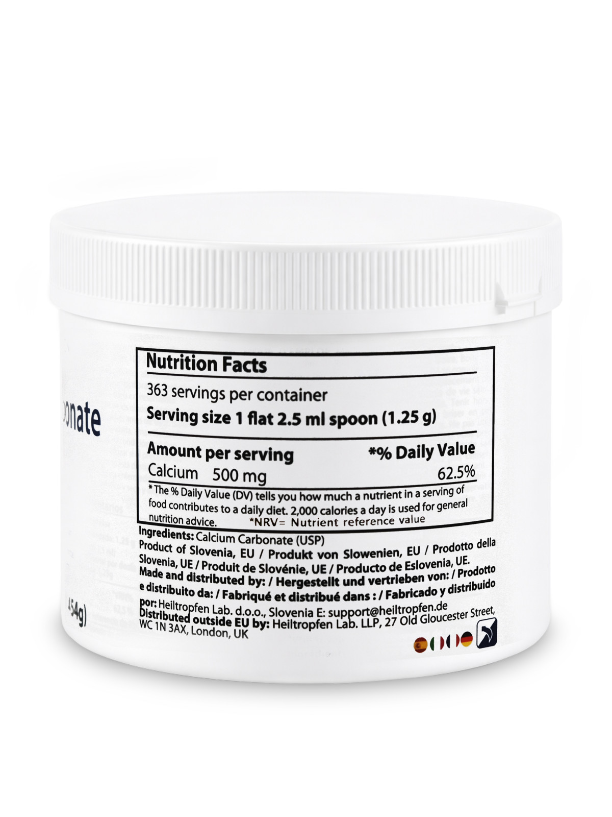 • El carbonato cálcico es un suplemento básico de calcio que contiene una de las concentraciones más altas de calcio elemental (alrededor del 40 %).