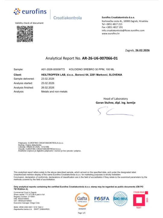 Dimensione ottimale delle particelle: il nostro argento colloidale è caratterizzato da particelle d'argento estremamente fini che garantiscono la massima biodisponibilità ed efficacia. La dimensione ridotta delle particelle consente una migliore distribuzione e assorbimento.