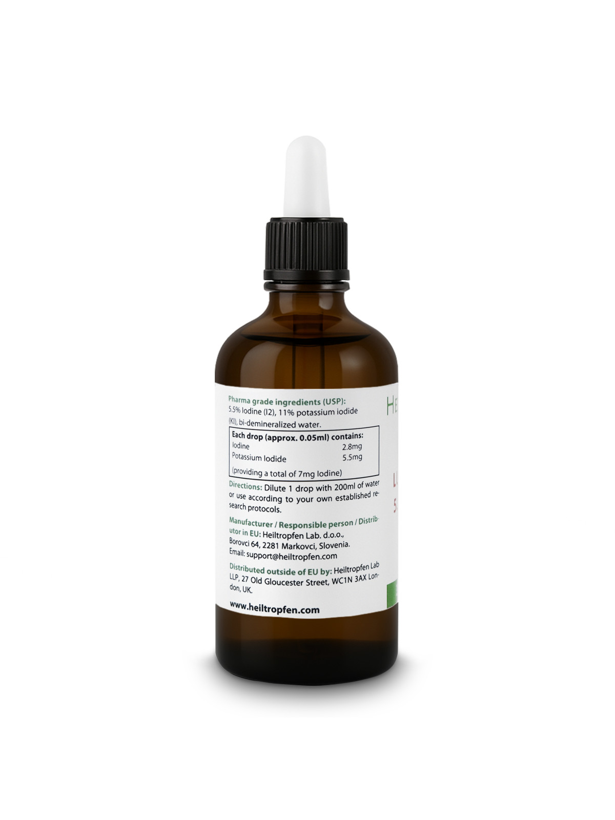 Lugol's jodiumoplossing 5% 3,4 oz - 100 ml | 15% vloeibare formule | Vloeibare druppels | Ondersteuning van de schildklier | Gemaakt met 5 procent jodium en 10% kaliumjodide