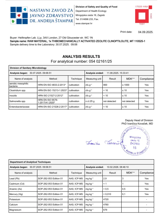 ULTRAFIJN | minder dan 20 µm | Clinoptiloliet 94%+-3 | geactiveerd | Natuurlijk mineraalstof