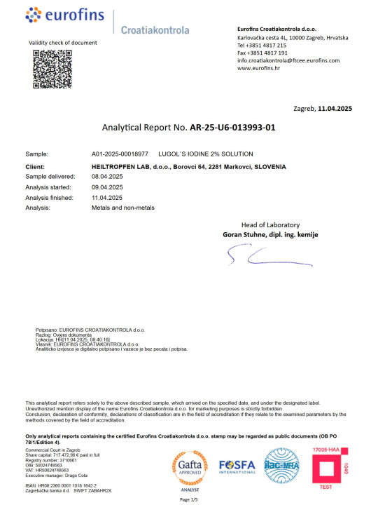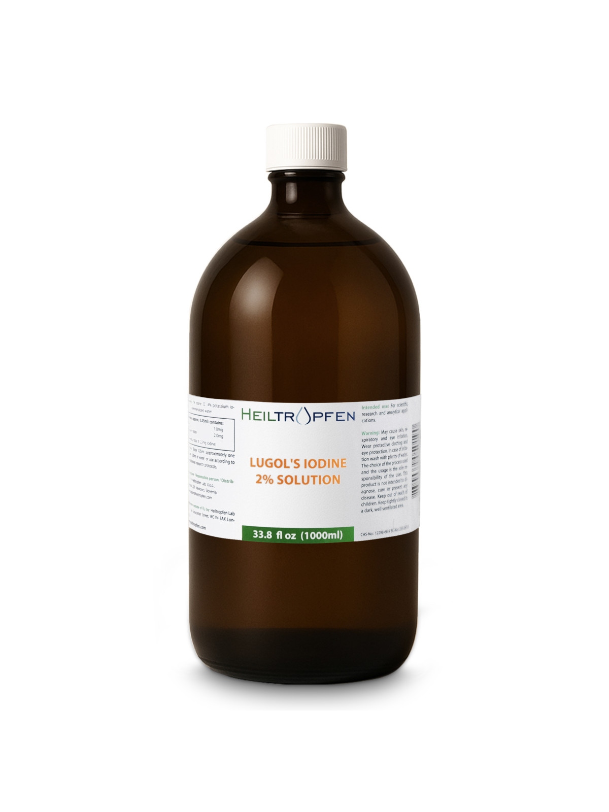 • AUTENTYCZNA FORMUŁA OD 1829 ROKU - Stworzony przez dr Jeana Guillaume'a Augusta Lugola, Heiltropfen odtwarza identycznie silny roztwór jodu i jodku Lugola. Roztwór Lugola, zawierający 2% jodu pierwiastkowego, zawiera również 4% jodku potasu, co zapewnia maksymalną i bardziej skuteczną absorpcję jodu / jodku (2,52 mg na kroplę).