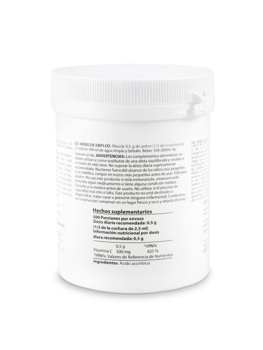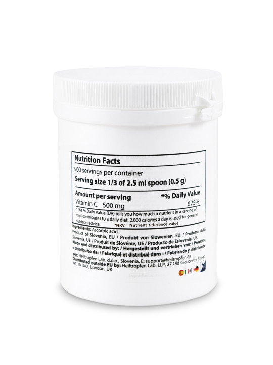 Ácido ascórbico puro em pó cristalino fino | 0,55 lb - 250 g | Vitamina C | Ingredientes farmacêuticos (Ph. EUR, USP, BP)