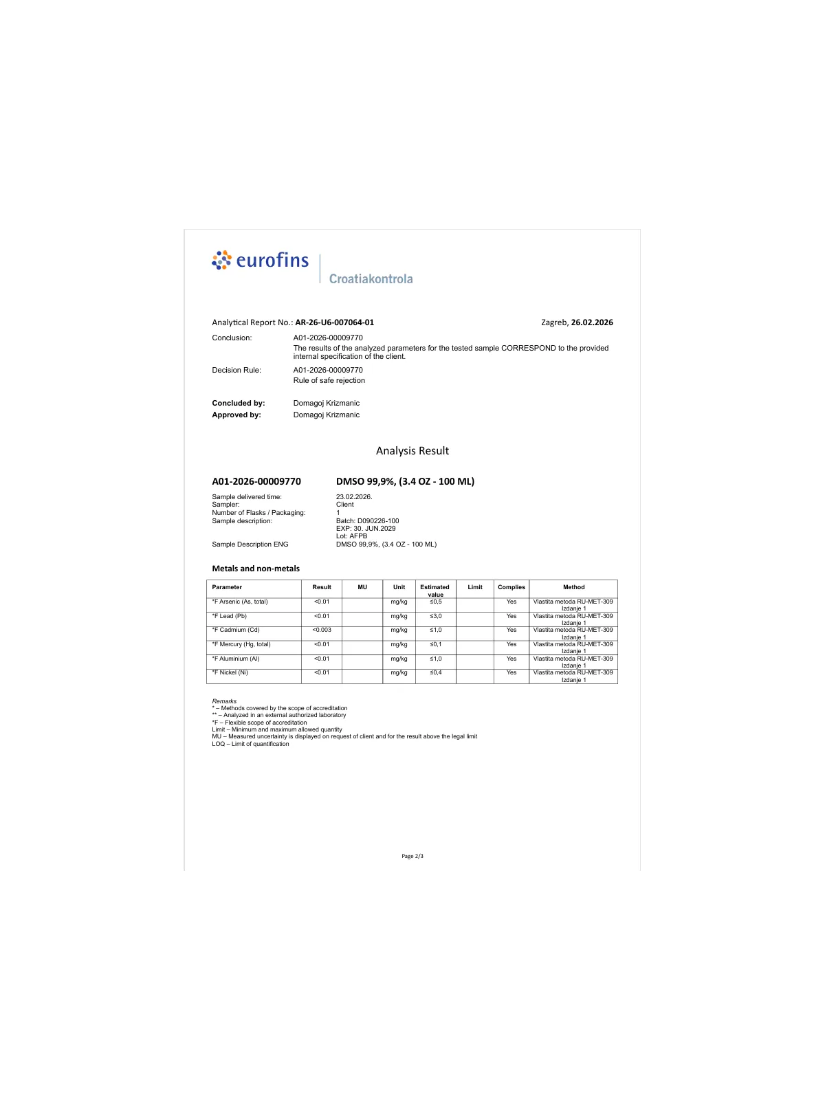 DMSO se v Združenih državah Amerike uporablja že več kot 100 let. Je naravna snov, pridobljena iz lesne celuloze, in je neškodljiva, če se uporablja s primernimi varnostnimi ukrepi. DMSO je organska, brezbarvna, naravna, nesintetizirana tekočina, pridobljena iz lignina.