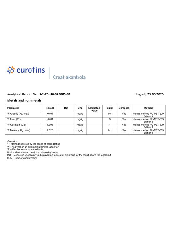 ● Testirano s strani tretje osebe za onesnaženost s težkimi kovinami. Na zahtevo vam bomo posredovali analizo težkih kovin. Naš izdelek izpolnjuje in presega zahteve USP. Neodvisna (USP) Ameriška farmakopeja je preverila metilensko modrilo, vključno s certifikatom.