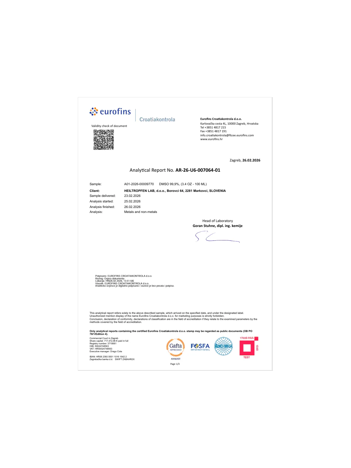 DMSO sa v Spojených štátoch používa už viac ako 100 rokov. Je to prírodná látka získavaná z drevnej buničiny, ktorá je pri správnom používaní a dodržiavaní bezpečnostných opatrení neškodná. DMSO je organická, bezfarebná, prírodná, nesyntetizovaná kvapalina extrahovaná z lignínu.